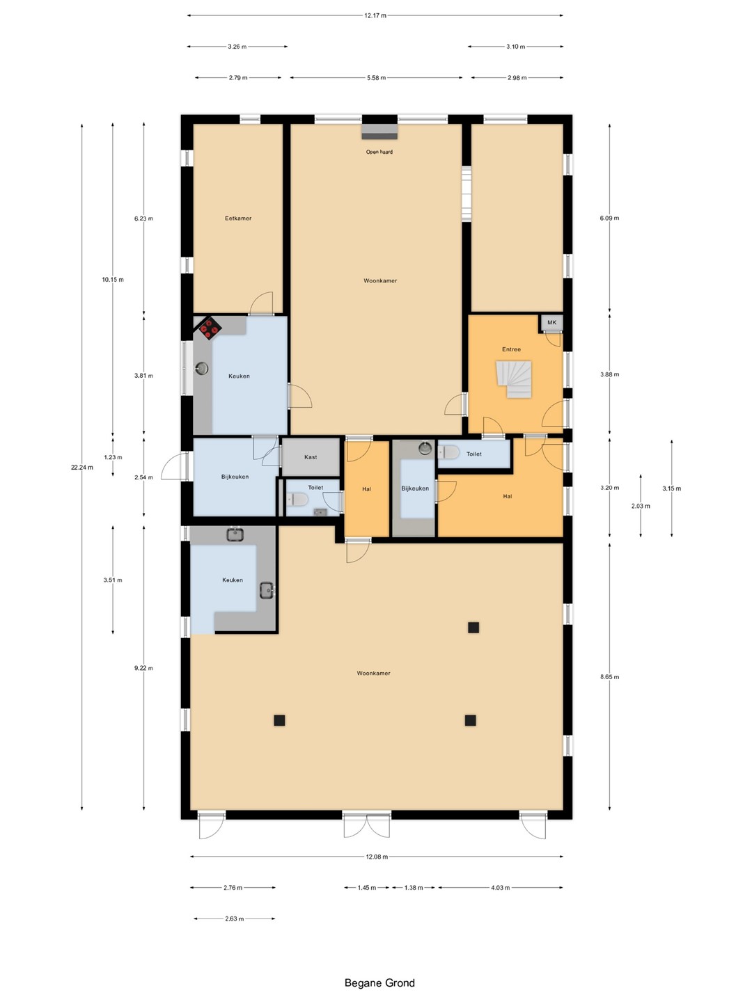 Vanaf de Noordzijde bereikt u over de oprijlaan de woning. De woonboerderij draagt de naam ‘Heining en Dam’. Uw auto parkeert u in de dubbele garage met elektrische deuren. Dankzij de royale afmetingen leent de boerderij zich uitstekend voor bewoning, maar biedt zij ook ruimte voor het realiseren van een kantoor of praktijk aan huis met eigen sanitair en buitendeur aan de achterzijde zodat u werk en privé gescheiden kunt houden.