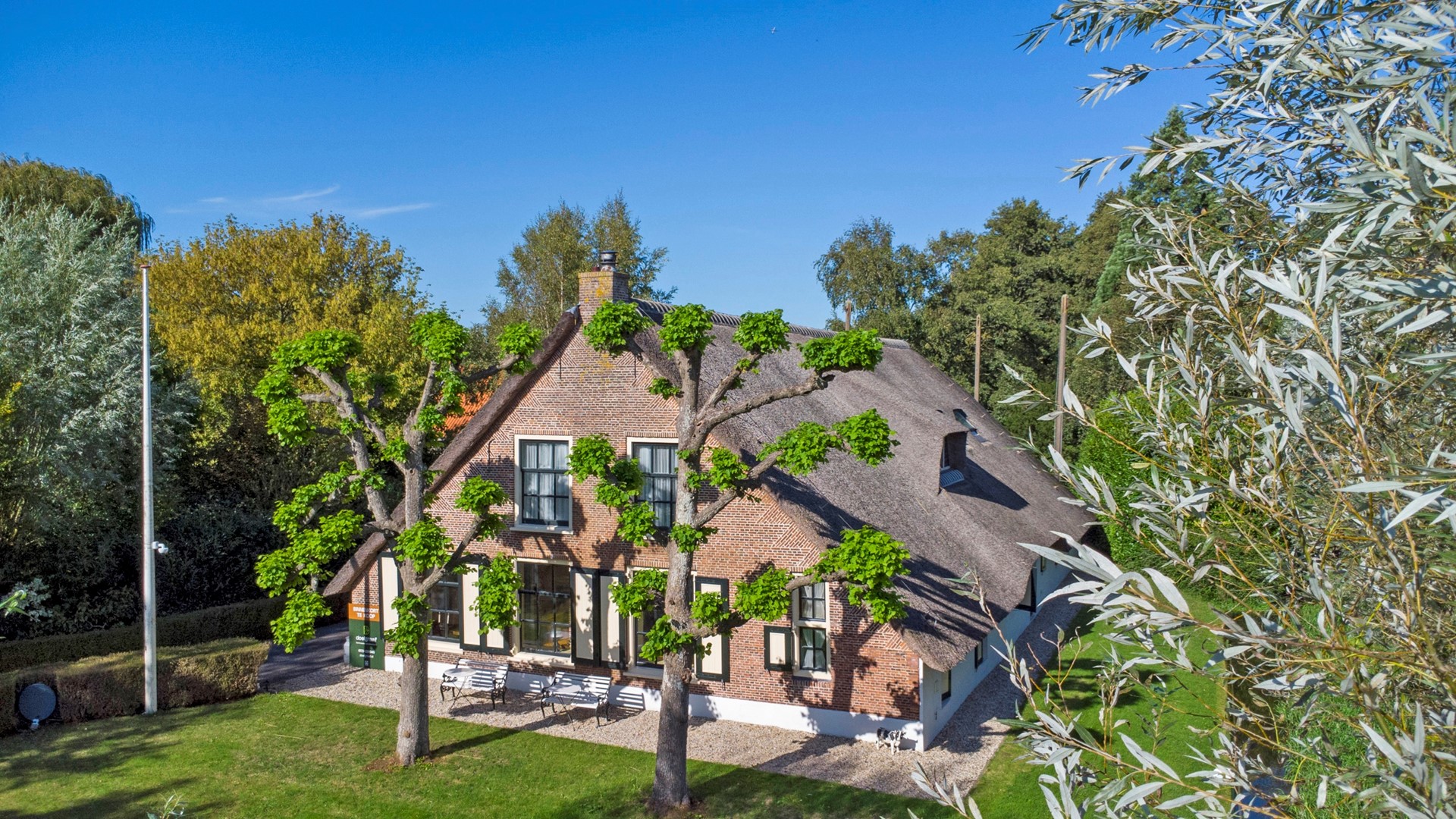 Gelegen op een bijzondere locatie aan de rand van het centrum van Bodegraven bevindt zich deze rietgedekte woonboerderij op een royaal perceel van ruim 2.800 m².